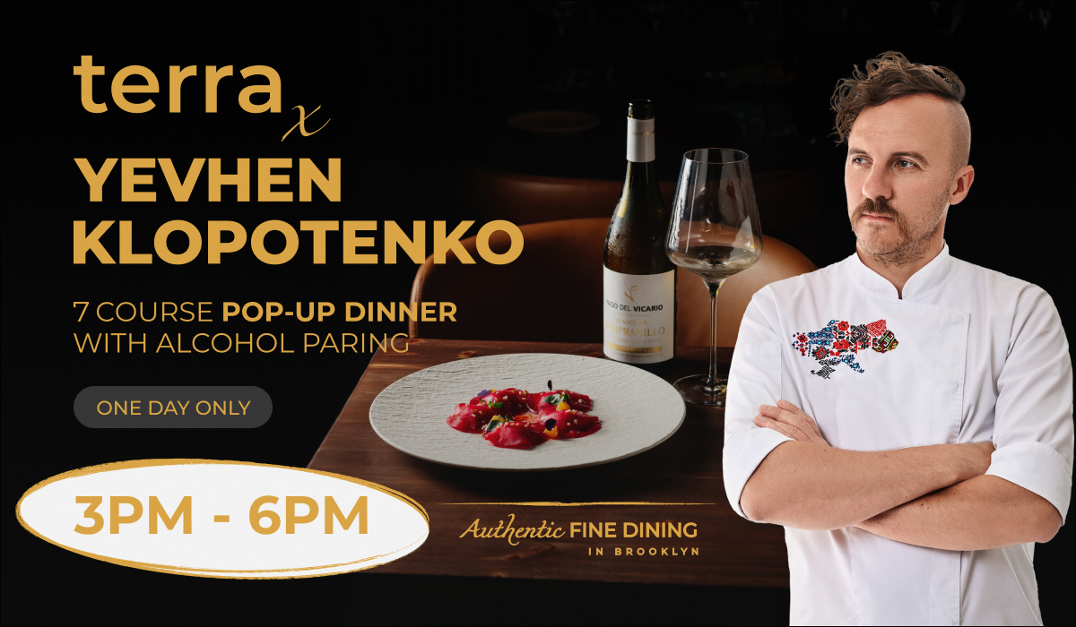 On a single day — Sunday, November 16 — Terra Brooklyn will glow like a candlelit Embassy of Flavor, a place where the precision of European fine dining meets the passionate revival of Ukrainian haute cuisine. Here, Chef Yevhen Klopotenko, Ukraine’s most daring and celebrated culinary innovator, will take the stage for a one-day-only tasting experience that transforms heritage into art.