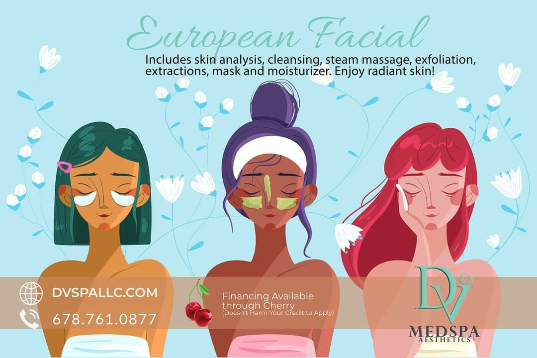 Європейський догляд за обличчям включає аналіз шкіри, очищення, паровий масаж, пілінг, екстракти, маска та зволожуючий крем. Насолоджуйтесь сяючою шкірою!