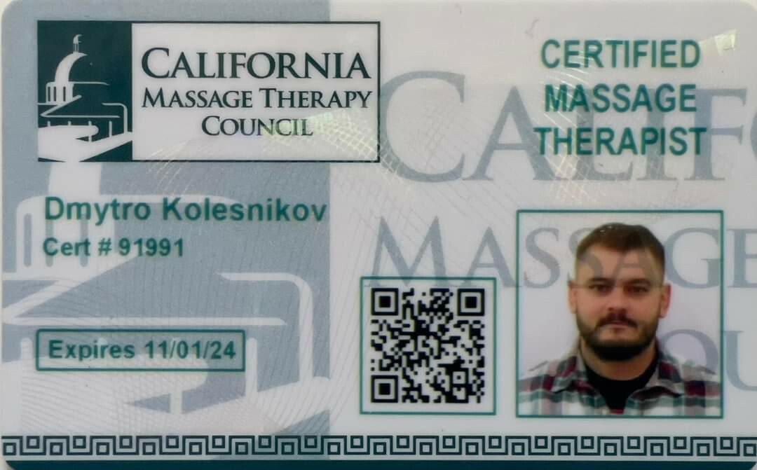 У 2022 році я закінчив навчання у місті Чикаго у Медичній Академії по програмі «Massage Therapist, CPR and First Aid Training»