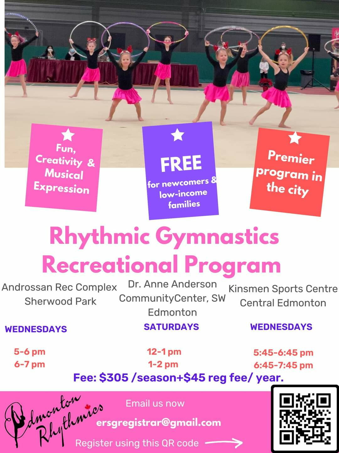 Перший клуб художньої гімнастики в Едмонтоні пропонує розважальні програми в громадському центрі доктора Енн Андерсон, у спортивному центрі Kinsmen, розважальному комплексі Androssan і Millenium Place у Шервуд-парку. Програма безкоштовна для сімей з низьким рівнем доходу та новоприбулих сімей, включаючи власників візи CUAT.