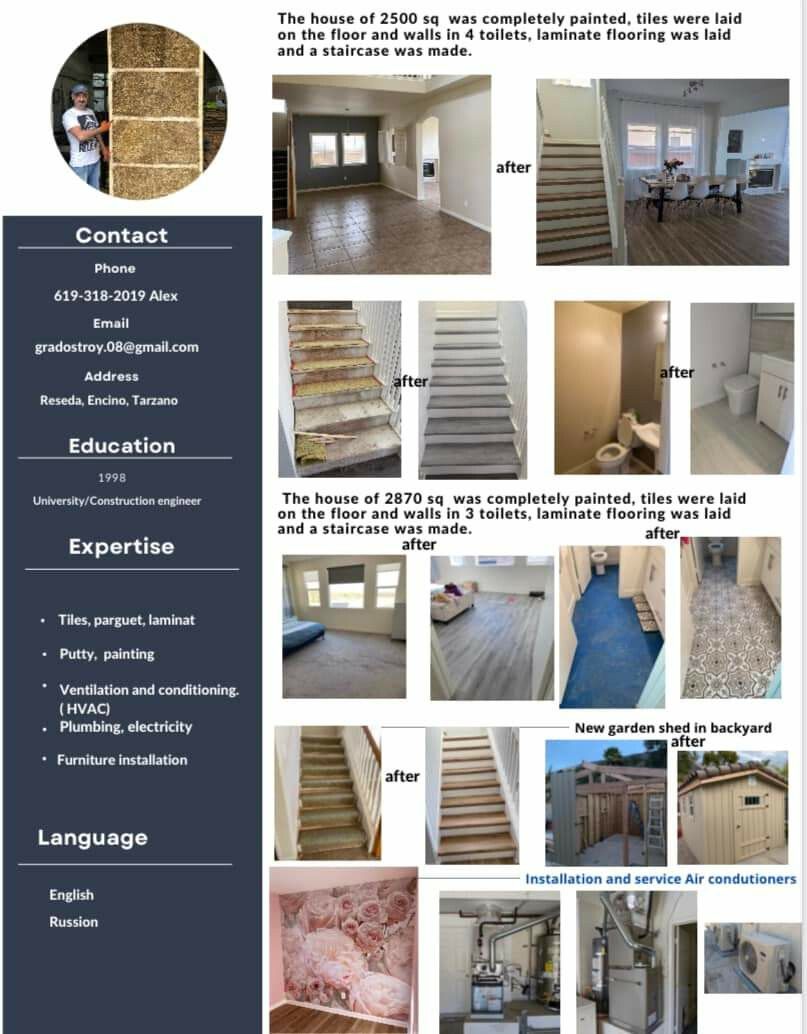 - І всі роботи handymen. Здійснюю доставку матеріалів та до кожного замовлення застосовую індивідуальний підхід. Легальний статус знаходження: ssn, work permit.
