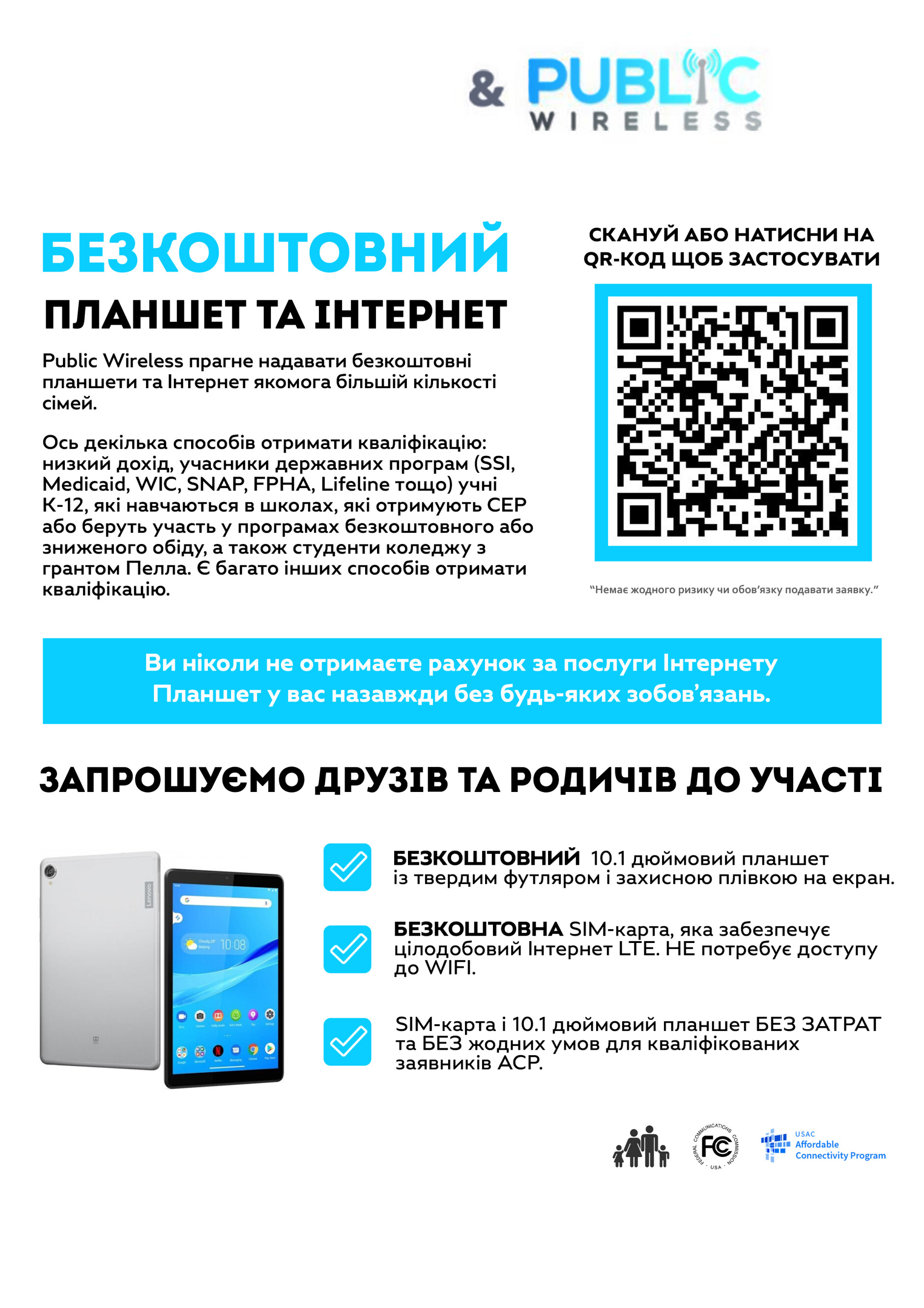 Public Wireless прагне надавати безкоштовні планшети та Інтернет якомога більшій кількості