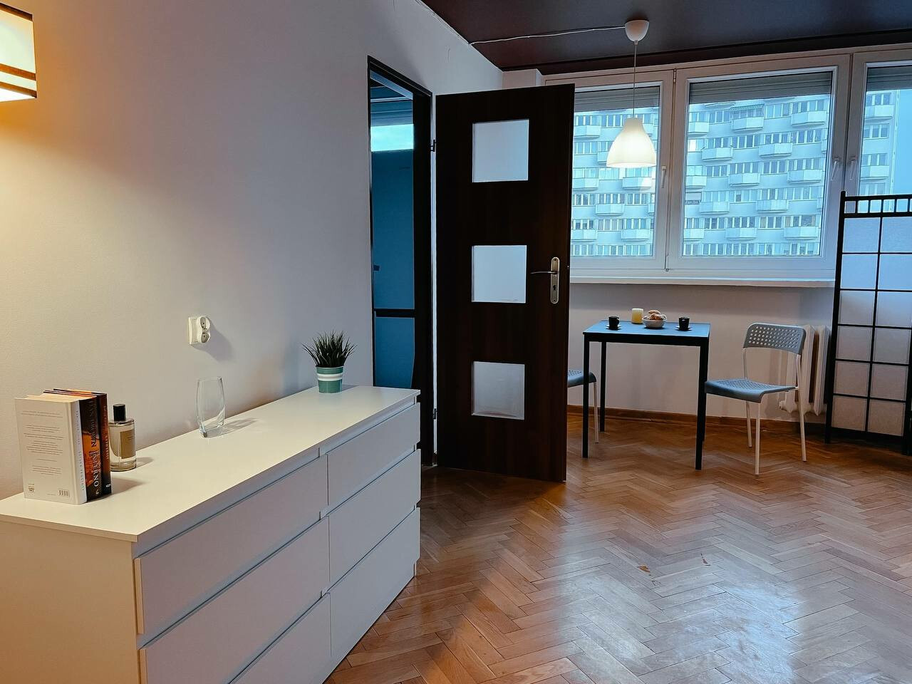 Дуже гарна транспортна розв'язка, трамвай та автобусна зупинка біля будинку. Швидке спілкування в будь-яку точку Варшави.