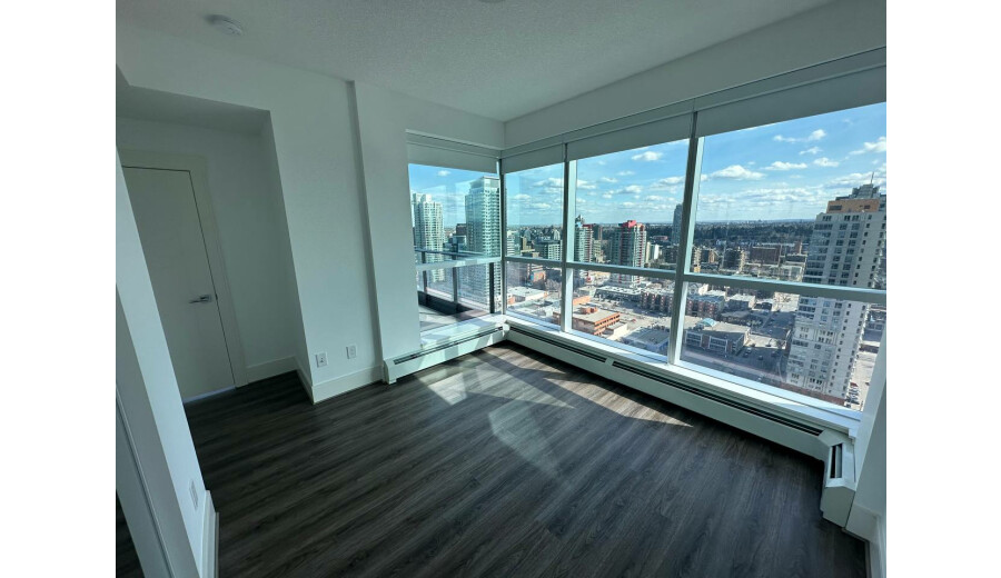 Світла і простора кімната на 23 поверсі з гарним видом на місто та гардеробом без меблів, готова до вашого декору та обстановки