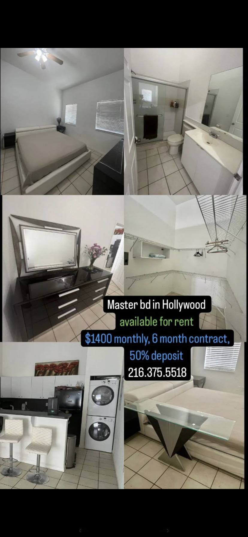 Здам в оренду мінімум на 6 міс майстер бедрум, за адресою 2516 Lincoln st, Hollywood, FL.