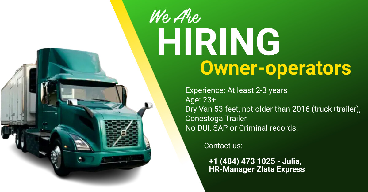 have your own Dry Van 53 feet, Conestoga Trailer - not older than 2016.