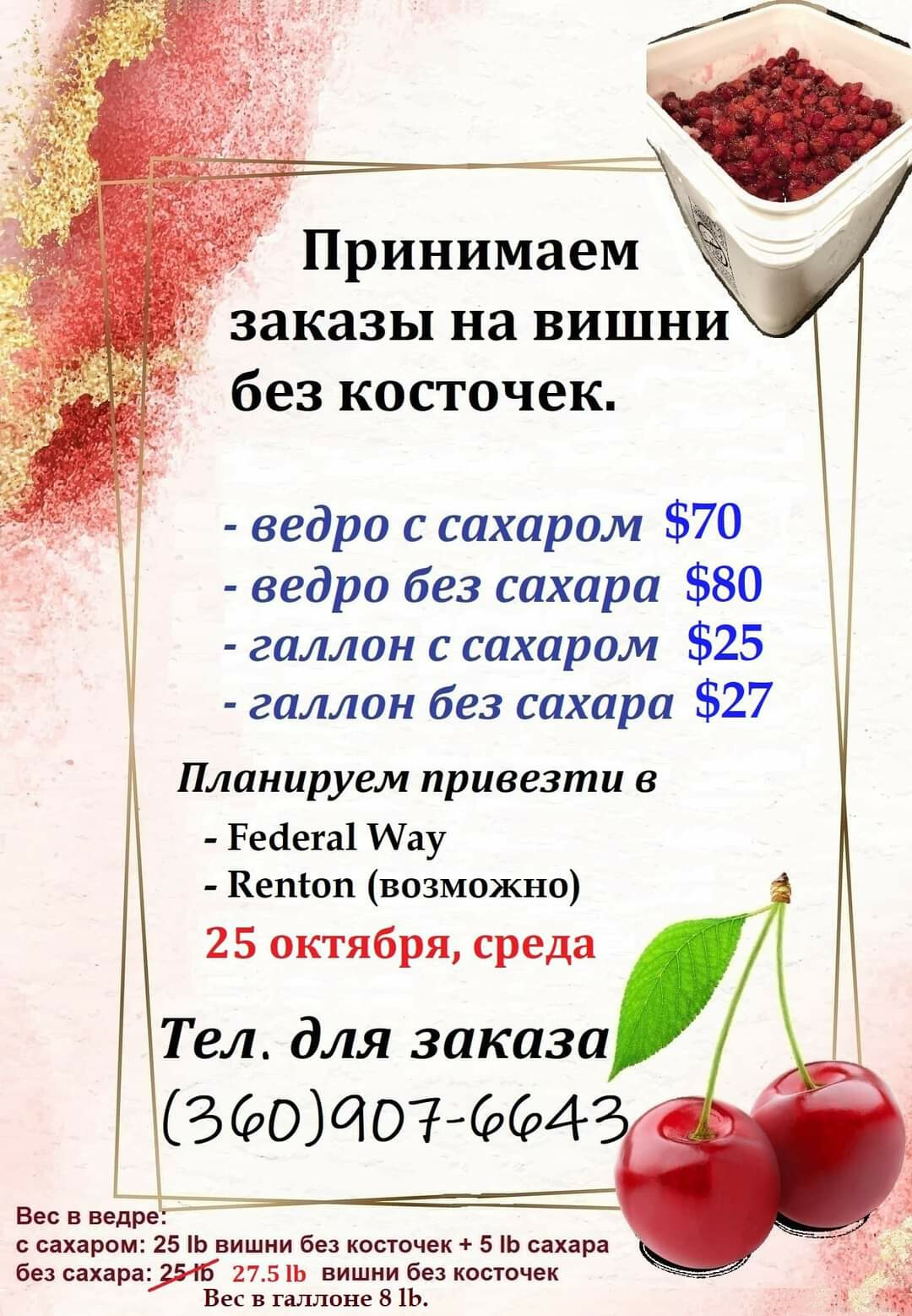 Вишня заморожена без кісточок, не черешня. Бажано подати замовлення до 22 жовтня.
