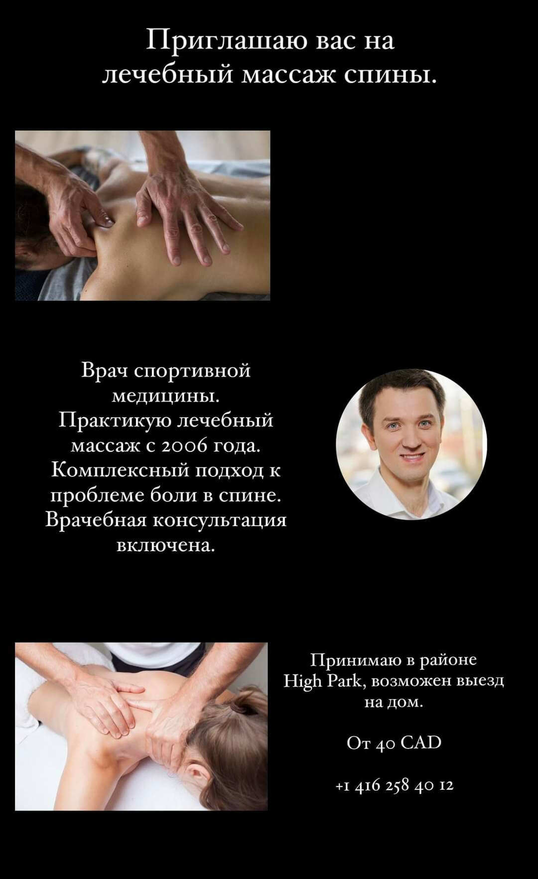 Практику лікувального масажу з 2006 року. Комплексний підхід до проблеми болю у спині. Лікарська консультація включена.
