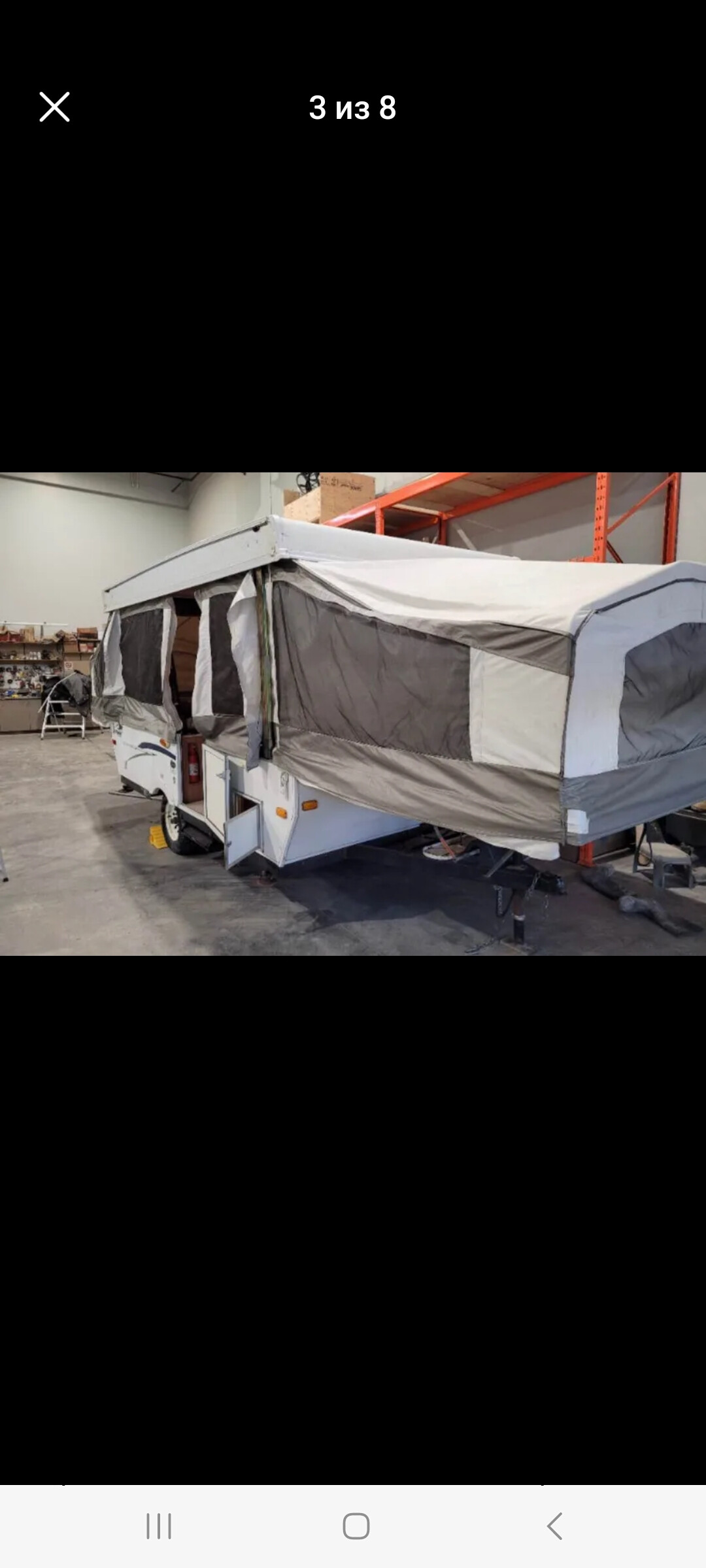In good condition! Great for beginners. 2008 year. No water damage. The roof is in good condition, although some small areas have been weathered over time. Nothing particularly noticeable or damaged. There was also a small tear in one corner. The camper has a stove, air conditioner, sink, stove, water tank or connection to the city. Several plugins. 2 king beds, clean but well used. A table with 2 benches that turns into another bed. 4 corner leveling jacks. Battery on the hitch, there is also a generator for sale for autonomous camping. Spare wheel. Dual propane tank setup. Sleeping places 8