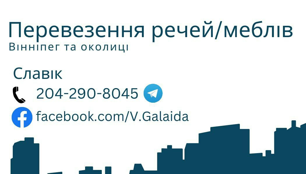 Пропоную свої послуги перевезення, завантаження / розвантаження,матраців, меблів, речей і.д., дзвоніть 204-290-8045 або пишіть в ПП, домовимося. Вінніпег та околиці.
