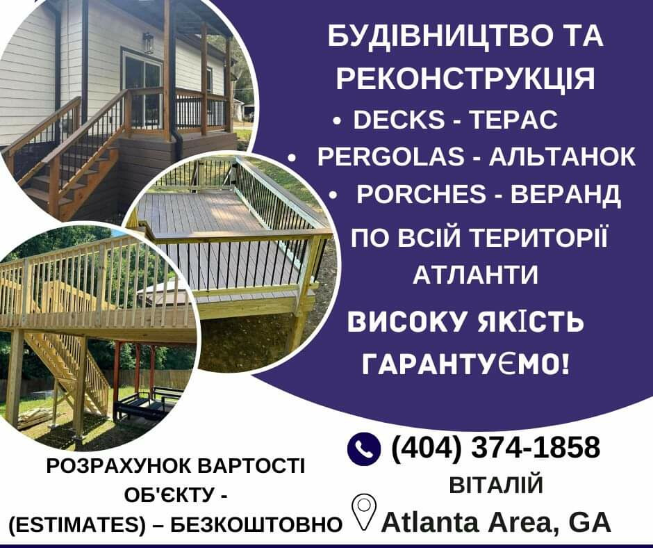 Якісне будівництво та реконструкція терас, веранд, альтанок для вашого будинку по всіх районах Атланти.