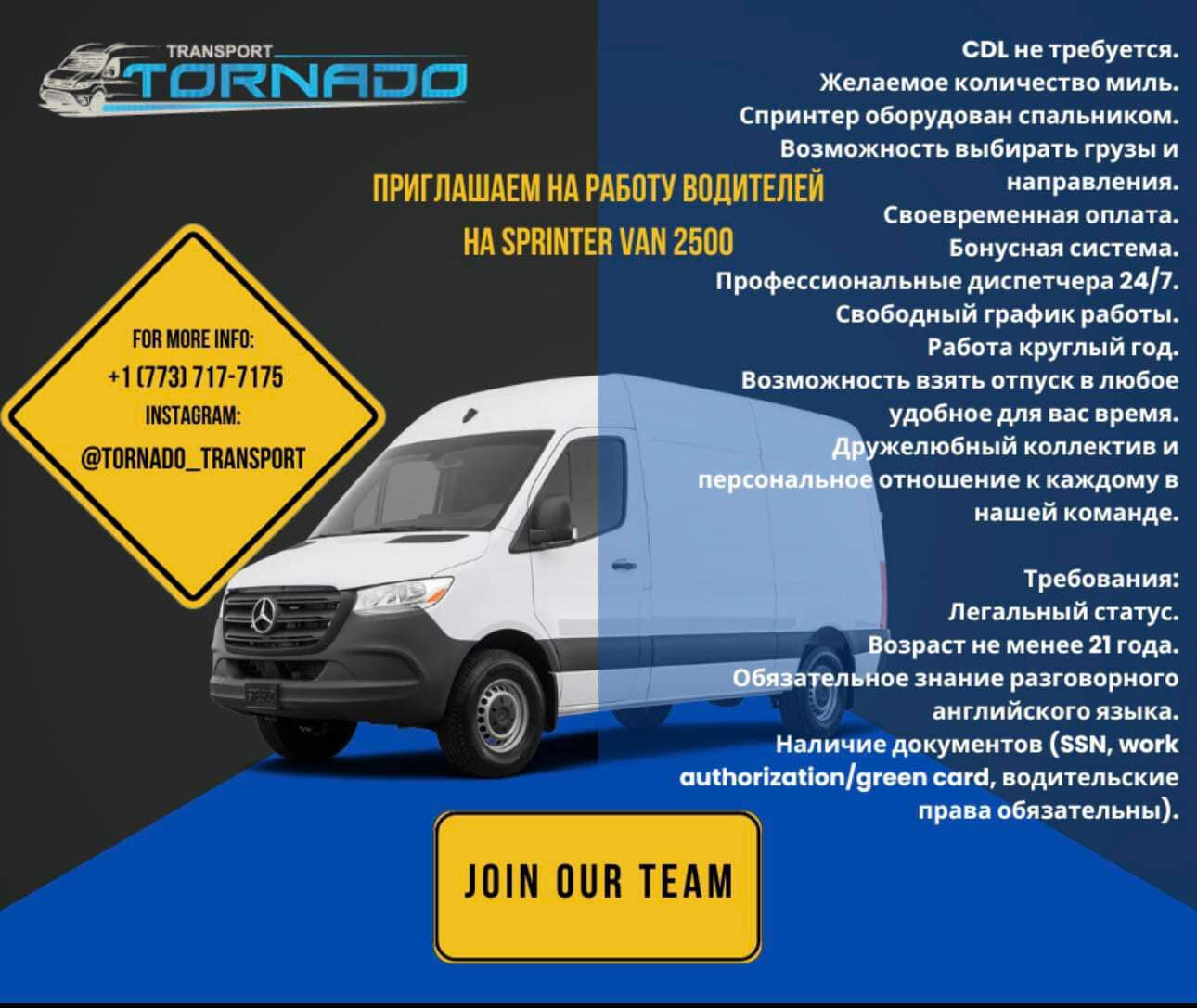 Запрошуємо на роботу водіїв на Sprinter van 2500.?