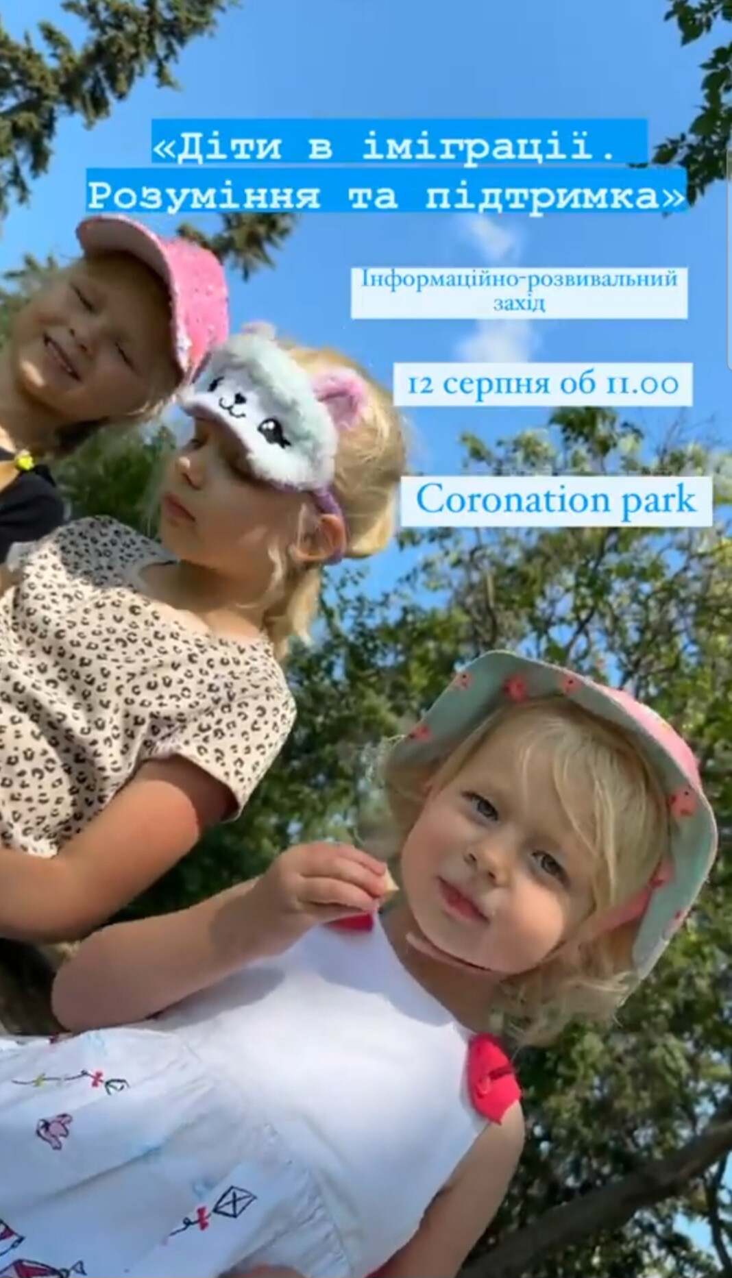Запрошую батьків із дітьми на інформаційно-розвиваючий захід «Діти в іміграції. Розуміння та підтримка». Який відбудеться за адресою: Edmonton, Coronation park (зі сторони 114 авеню).