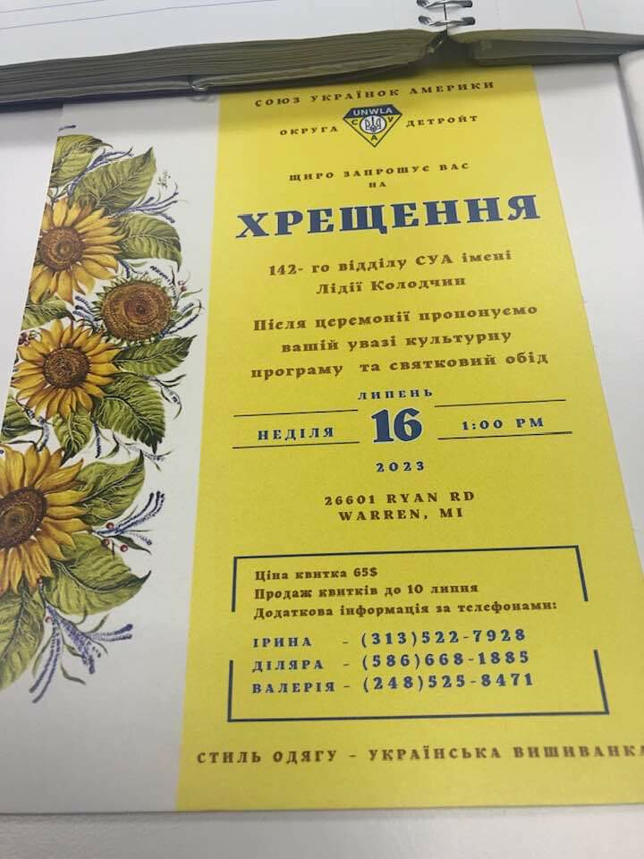 Союз українок Америки округа Детройт щиро запрошує Вас на хрещення 142-го відділу СУА імені Лідії Колодчин.