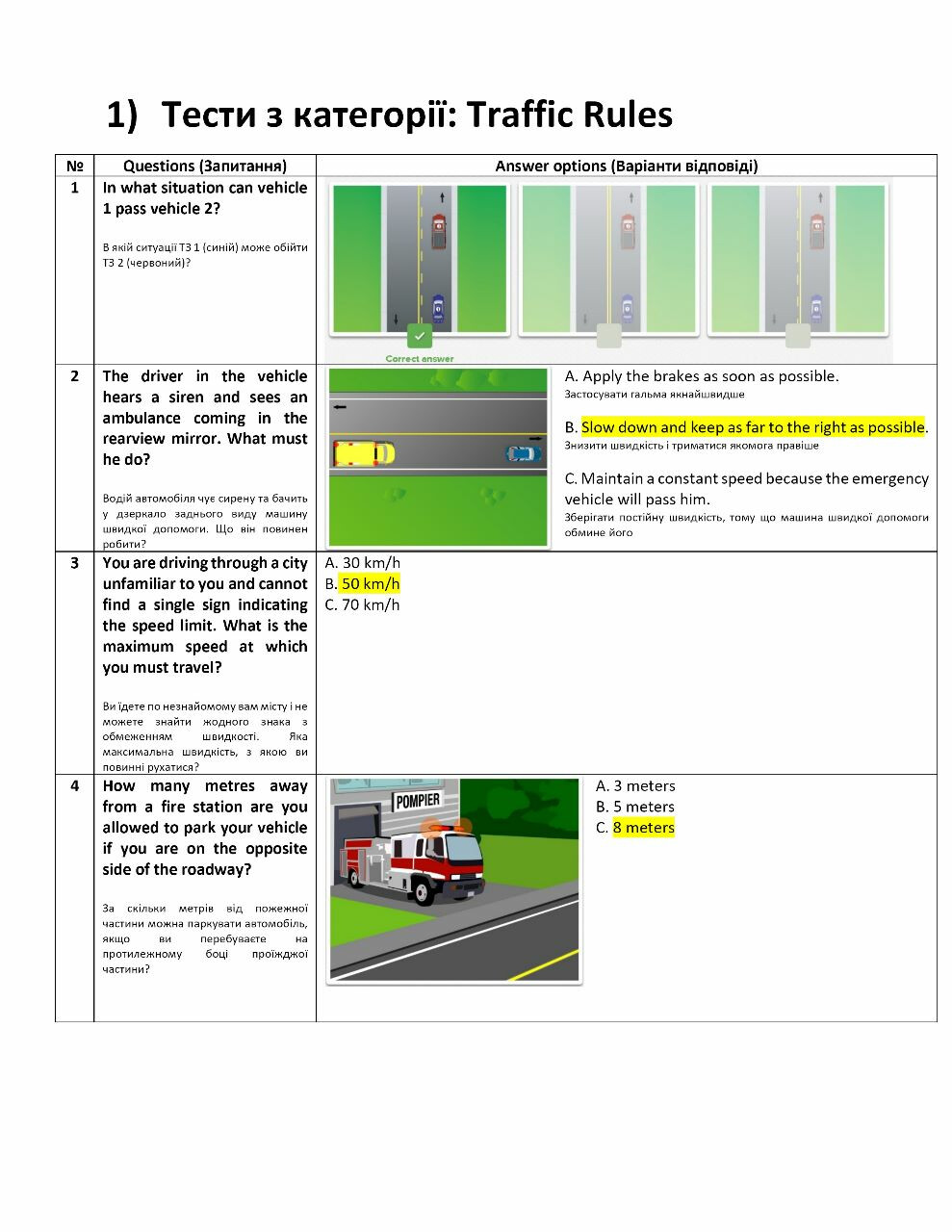 Матеріали для підготовки до екзамену з водіння Українською Квебек