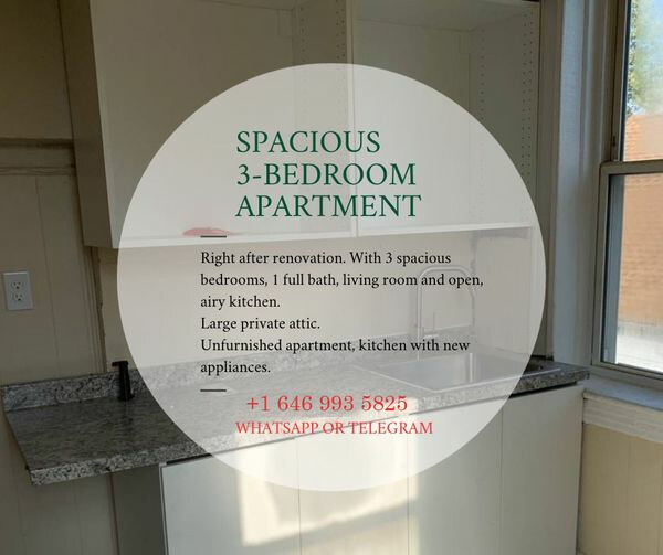 Нещодавно відремонтована квартира з 3 спальнями, затишною вітальнею, ванною кімнатою та відкритою кухнею.