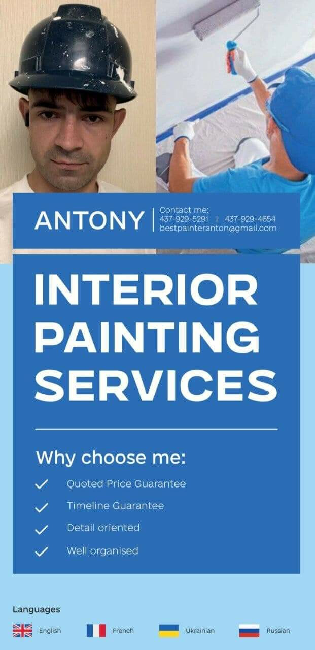 Фарбування інтер'єру в квартирах і будинках в Торонто і найближчих містах . Якісне фарбування, включаючи оздоблювальні роботи