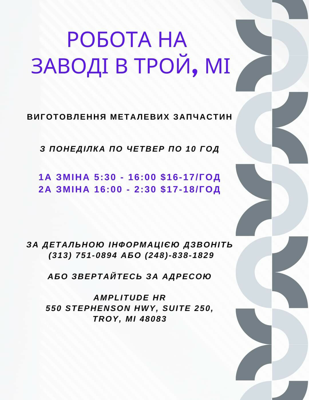 2А ЗМІНА 16:00 - 2:30 $17-18/ГОД;