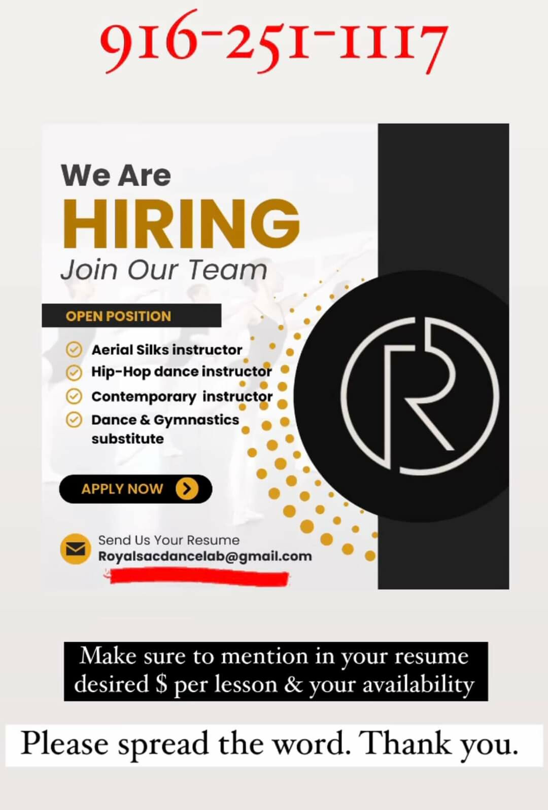 Надішліть нам своє резюме на Royalsacdancelab@gmail.com