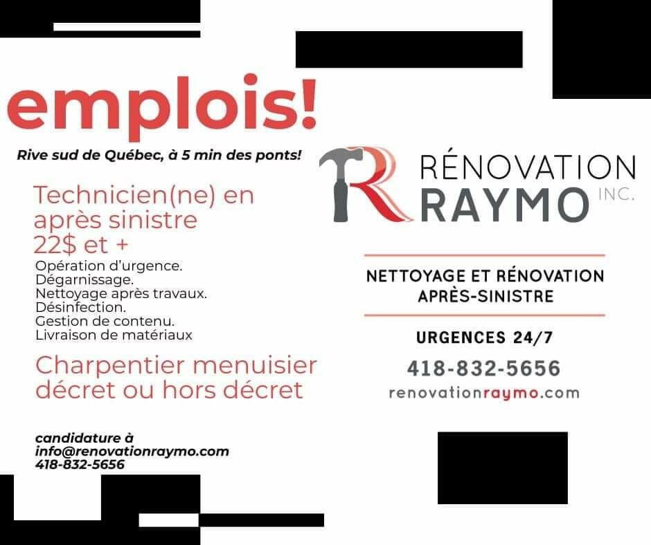 Звертатися за адресою info@renovationraymo.com 418-832-5656