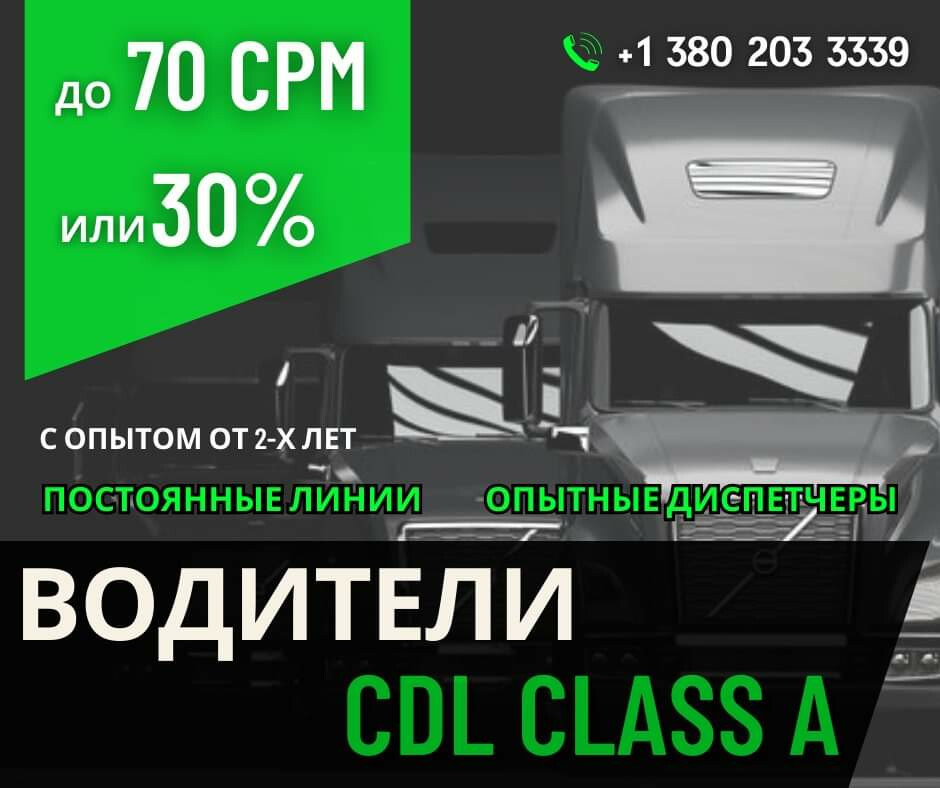 Запрошуємо водіїв CDL класу А з досвідом роботи 2 роки.