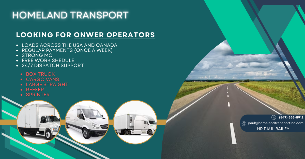 We are lookig for owner operators. We have a reeferal system so you can invite your friends! Also have additional services for you!
