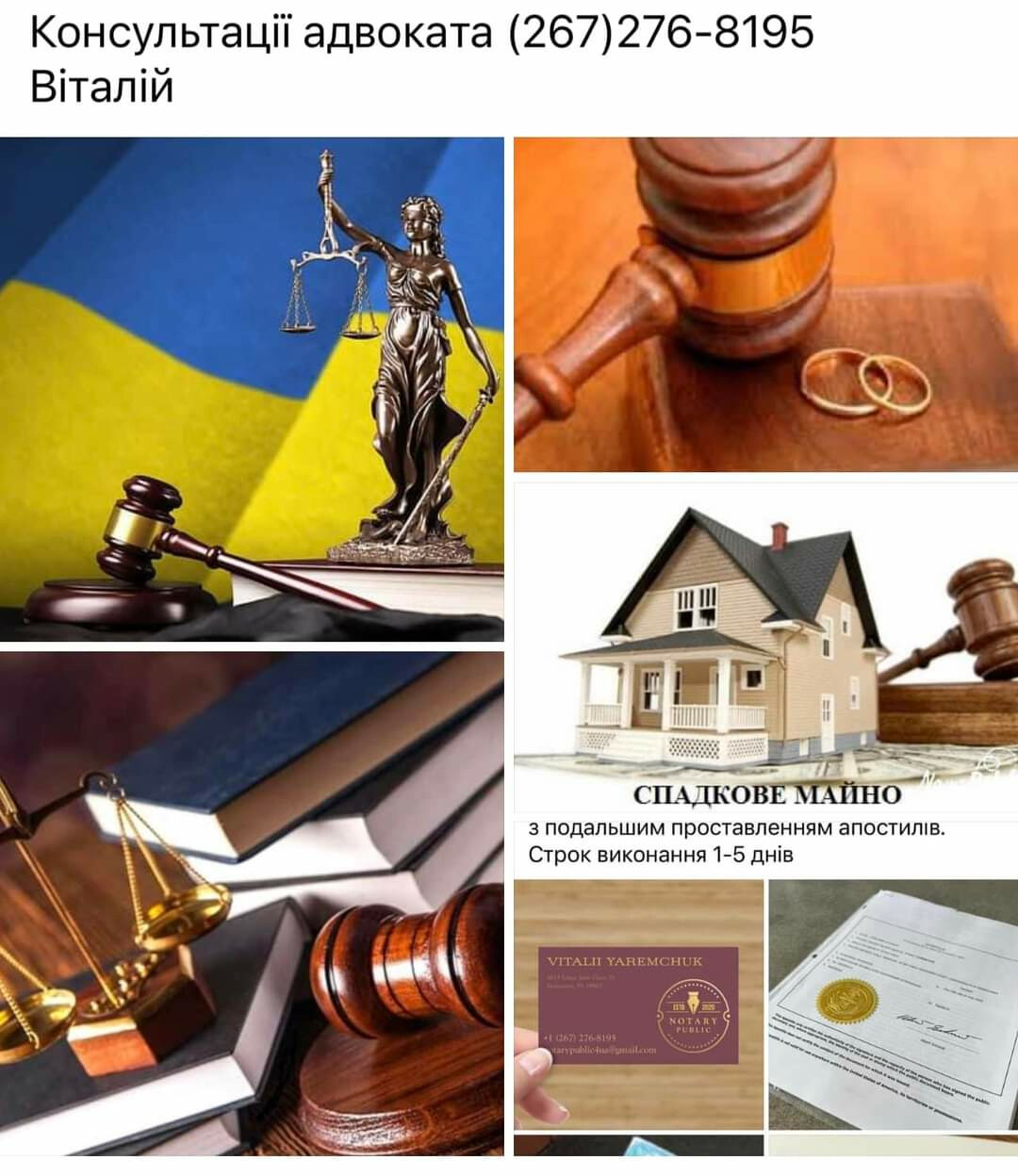 Юридичні консультації з приводу українського законодавства, вирішення судових справ, нотаріальні послуги в США.