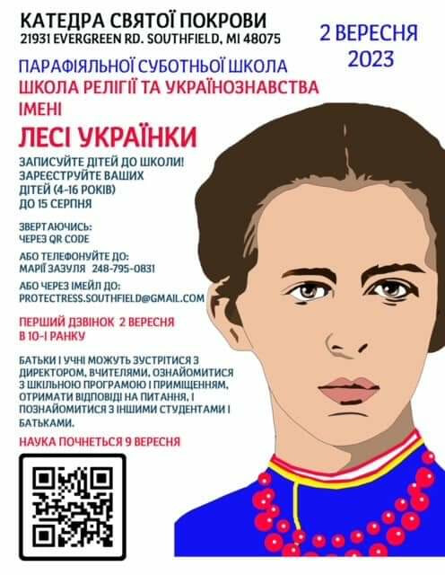 Запрошуємо на навчання в Українську суботню школу Релігії та Українознавства Lesya Ukrainka
