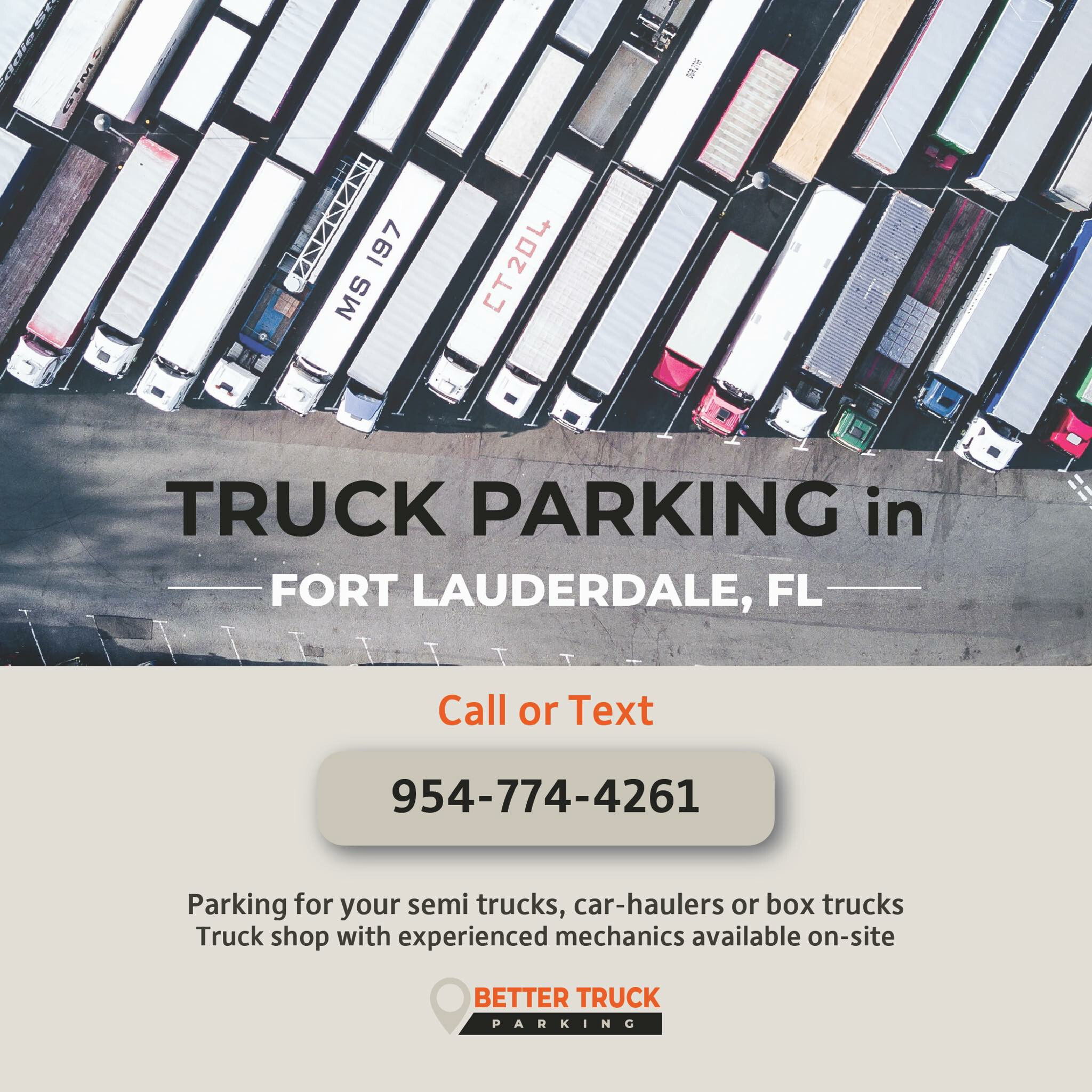 Парковка для траків у Fort Lauderdale, FL на перетині 95 і 595 highway. Встигніть забронювати місце на свята