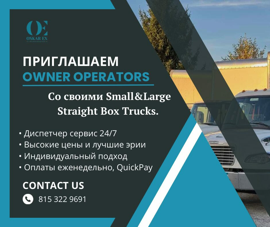 Запрошуємо OWNER OPERATORS - Non CDL зі своїм Small & Large straight box truck, Dry VAN!