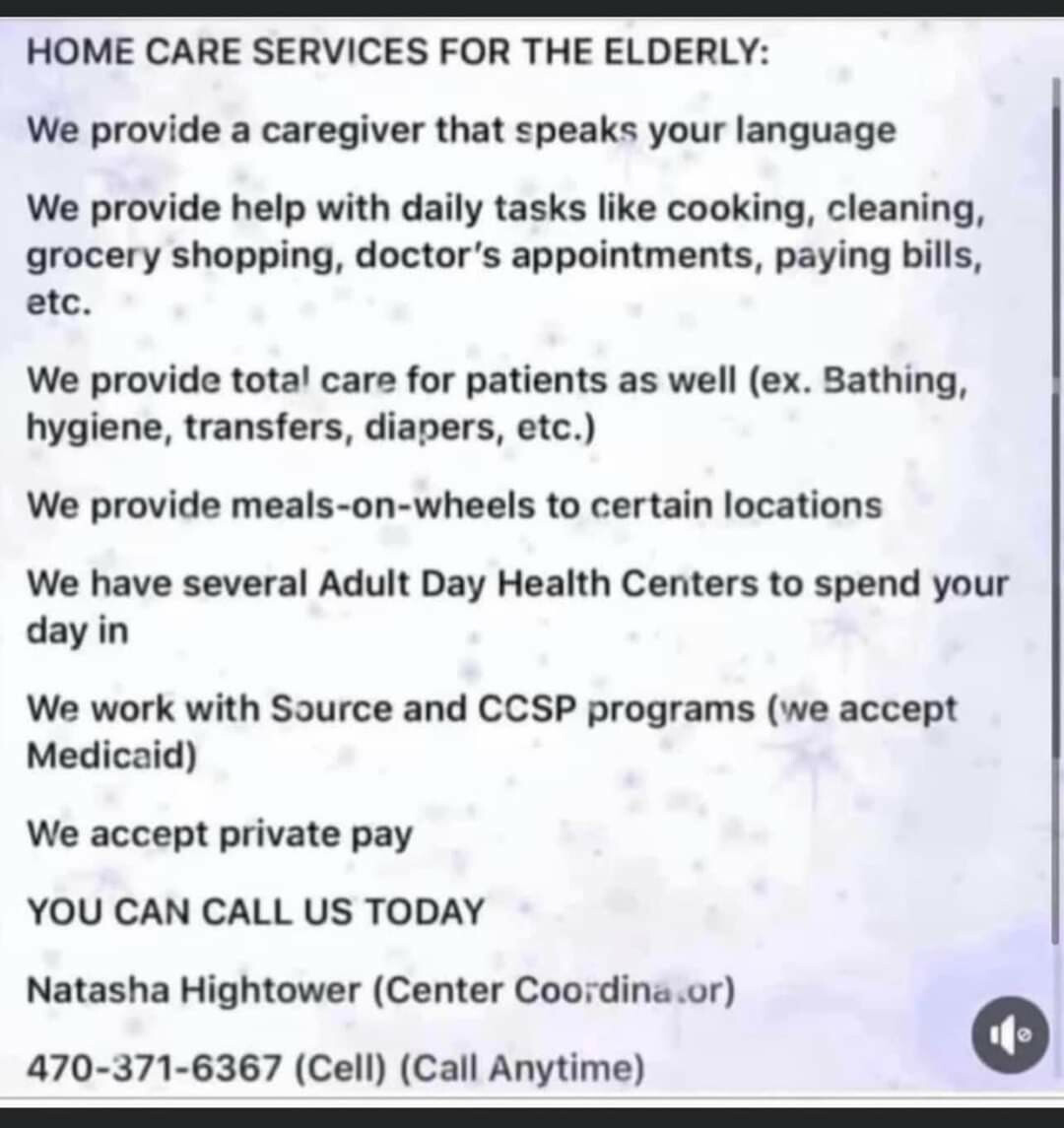 Ми також забезпечуємо повний догляд за пацієнтами (наприклад, купання, гігієна, трансфери, підгузки тощо).