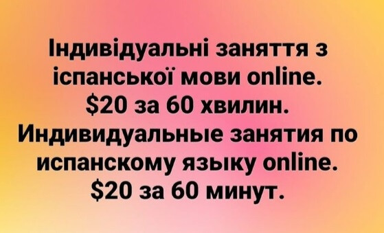 Індивідуальні заняття з іспанської онлайн. 20$ за 60 хвилин.