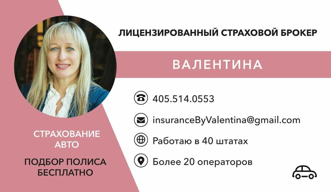 Я ваш страховий брокер Валентина. Якщо ви шукаєте якісне покриття за вигідною ціною для АВТО, зв'яжіться зі мною сьогодні. Заповніть форму (або зателефонуйте) і я БЕЗКОШТОВНО прорахую ціну на страхове покриття.