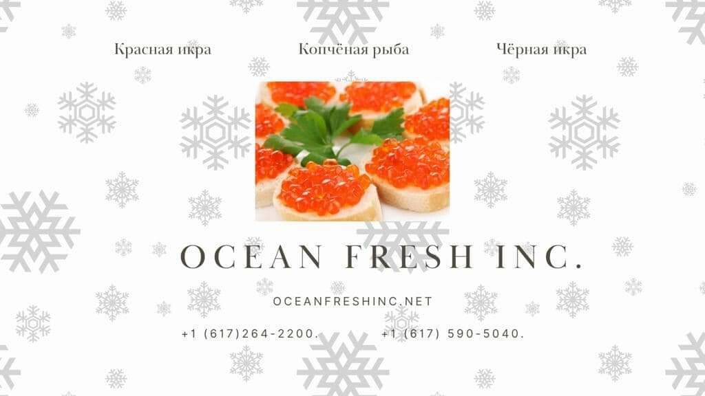 Напередодні новорічних свят наша корпорація Ocean Fresh Inc. пропонує вам рибні делікатеси, включаючи чорну та червону ікру з перших рук. Всім покупцям разом із новорічними знижками ми даруємо смачні подарунки.