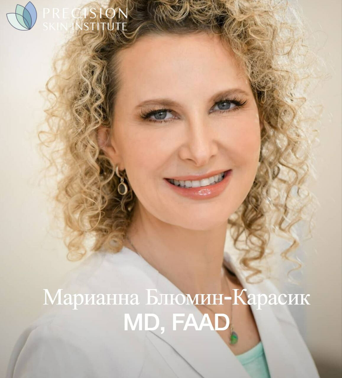 Доктор Маріанна Блюмін-Карасік – сертифікований дерматолог, який спеціалізується на косметичній, медичній та хірургічній дерматології, а також співзасновник Precision Skin Institute у Деві, Флорида.