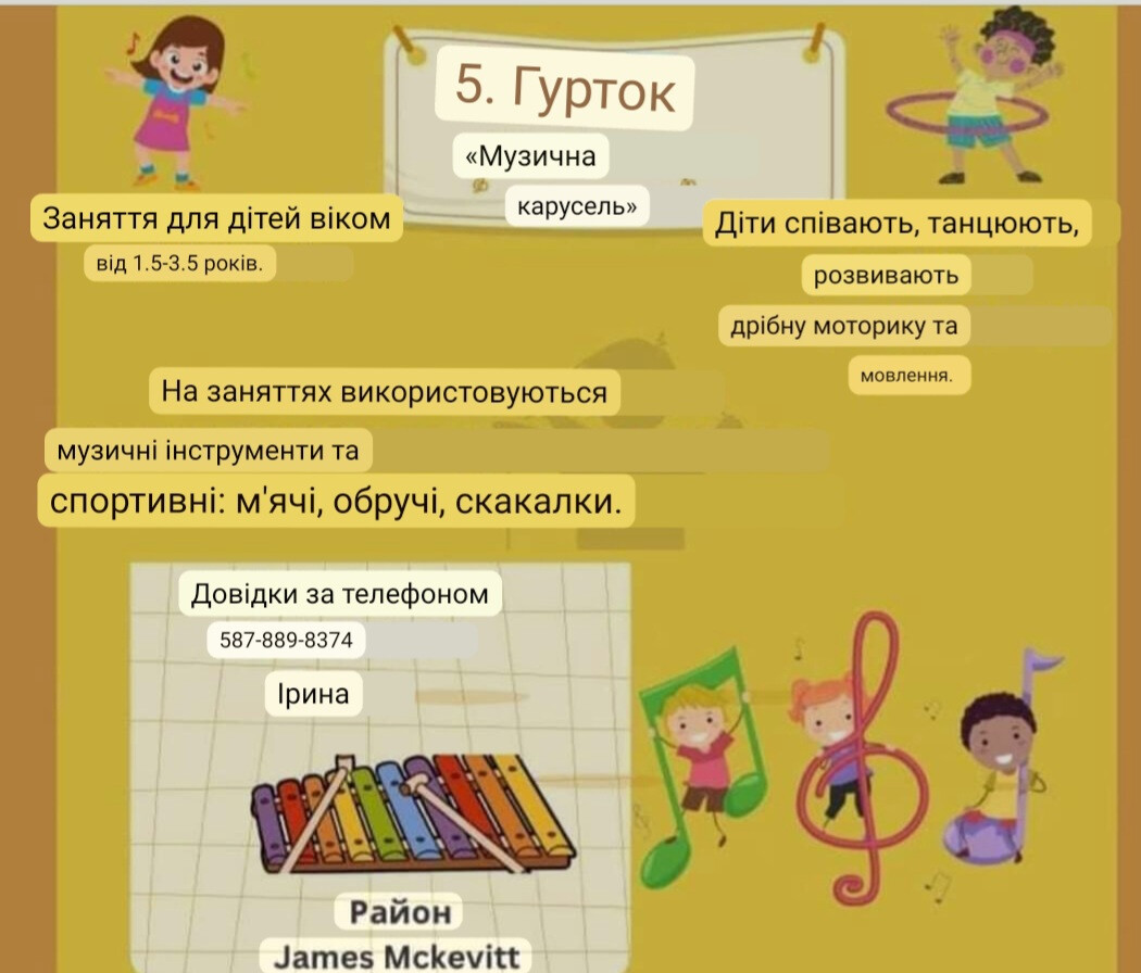 Якщо у вашої дитини поки що немає друга або вона поки не може залишити маму навіть на хвилину, у вас є чудова можливість провести час разом з користю. Гурток Музична карусель оголошує набір до групи по суботах о 9 ранку. Тривалість 45 хвилин. Заняття разом із мамою.