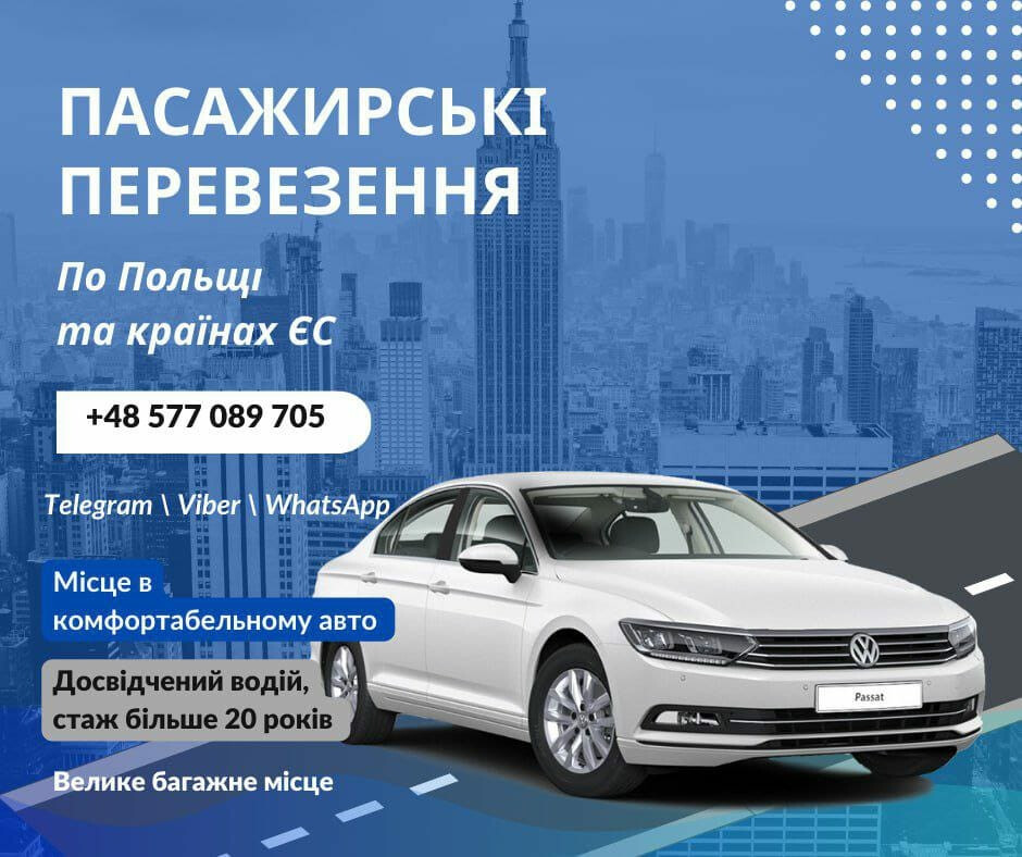 Допомагаю в перевезенні людей по Польщі та країнах ЄС,зустріч з кордону та до кордону. Зустріч з аеропортів, вокзалів. Відвезу в будь-який зручний для вас час. Всі деталі за номером телефону +48 577 089 705 чи пишіть в ЛС
