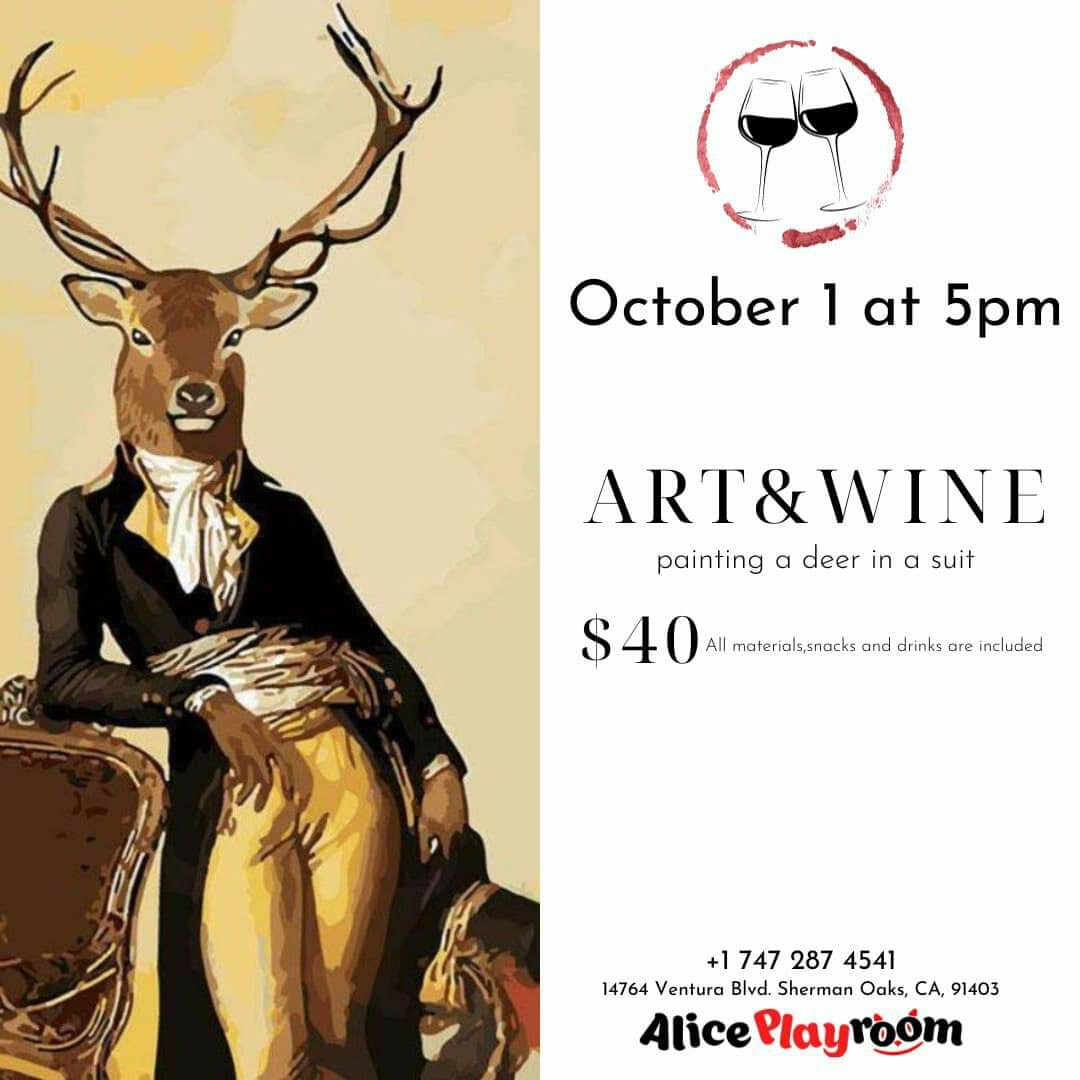 Ми організуємо 1 жовтня у 5pm захід Art & Wine, де малюватимемо картину в осінній естетиці – олень у костюмі.