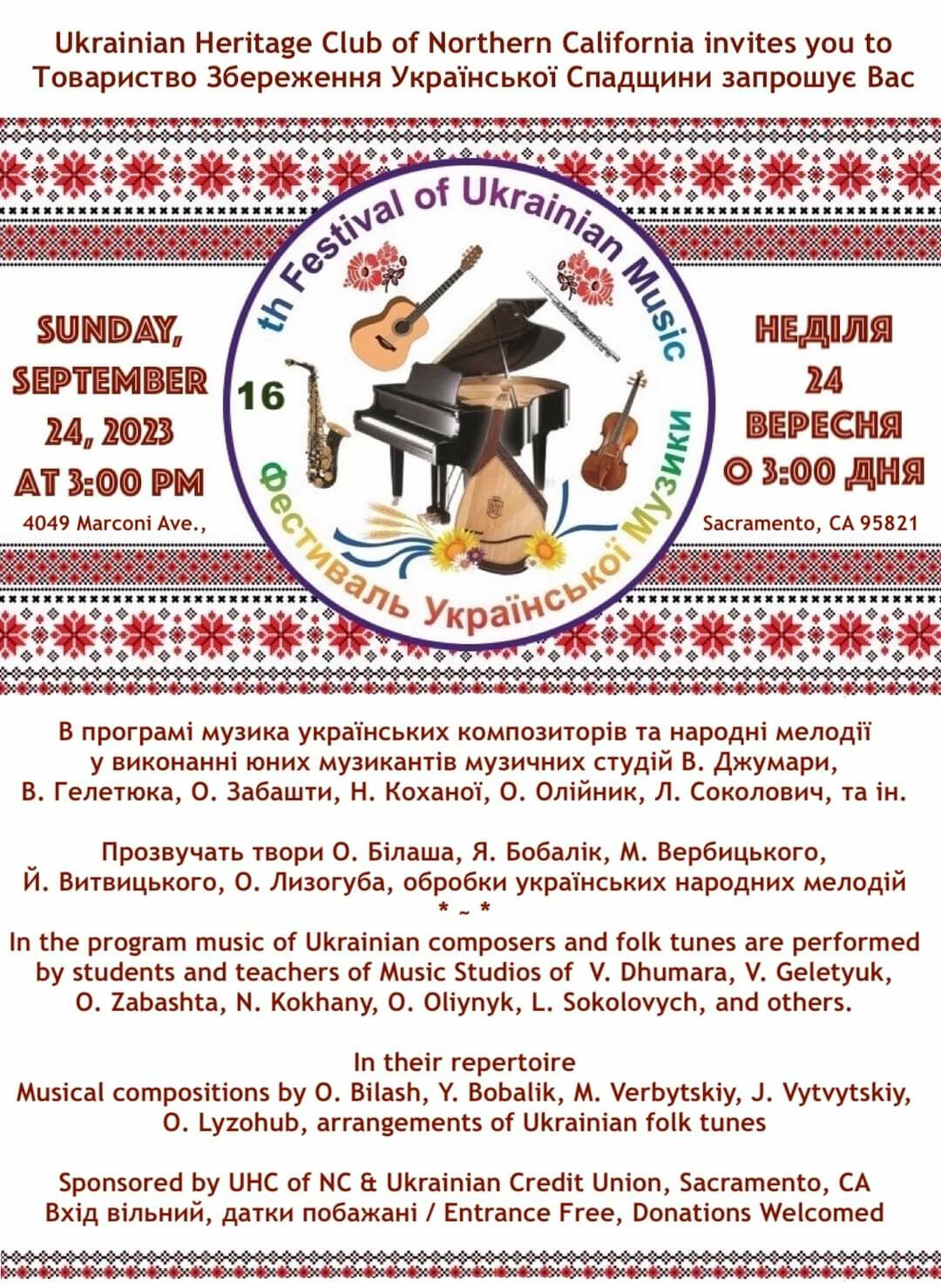 Прозвучать твори О. Білаша, Я. Бобалік, М. Вербицького, Й. Витвицького, О. Лизогуба, обробки українських народних мелодій