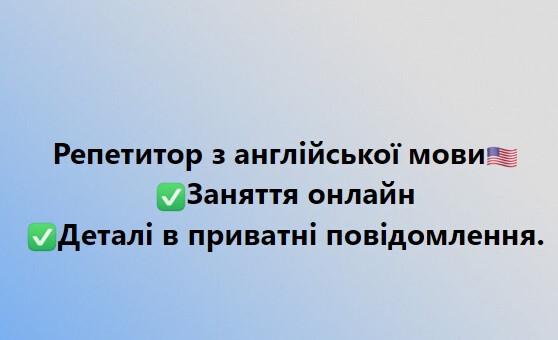 Репетитор з англійської мови?? ✅Заняття онлайн ✅Деталі в приватні повідомлення.