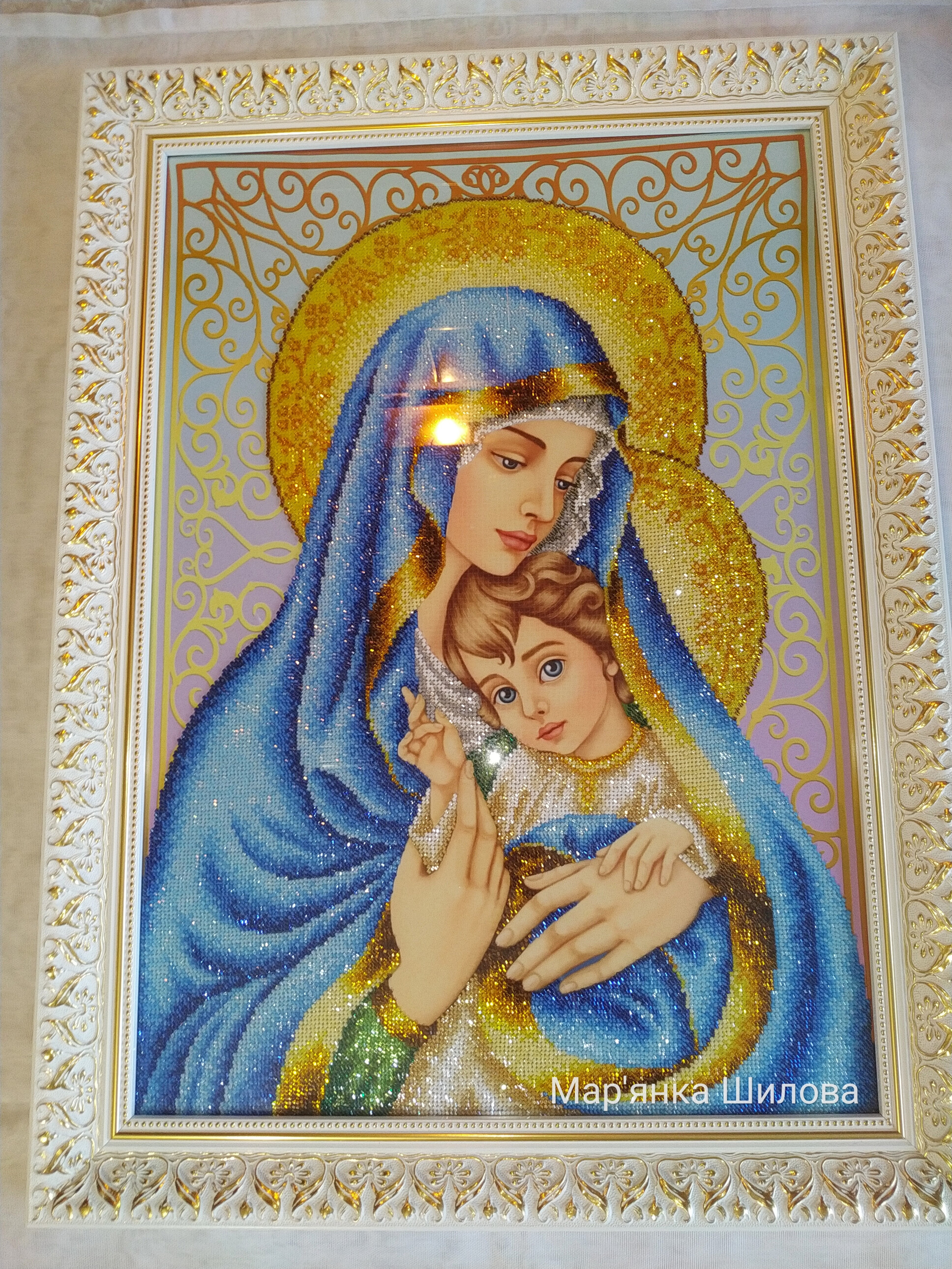 Ікона Матері Божої з Ісусом , вишита ікона, ікона бісером, вишивка, подарунок, хендмейд, ручна робота, зроблено з любов'ю