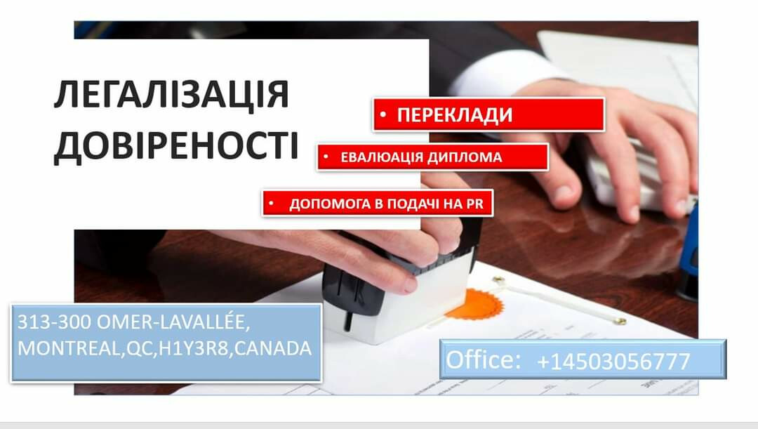 Ви можете оформити запит для перекладу або імміграційного процесу, всіх важливих документів для різних державних закладів Канади.