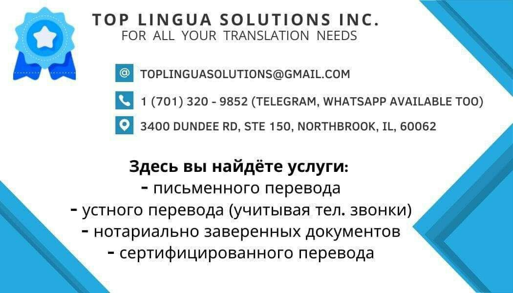 Якщо у вас є питання, звертайтеся за адресою toplinguasolutions@gmail.com або 1 (701) 320-9852 (також Telegram, WhatsApp)!