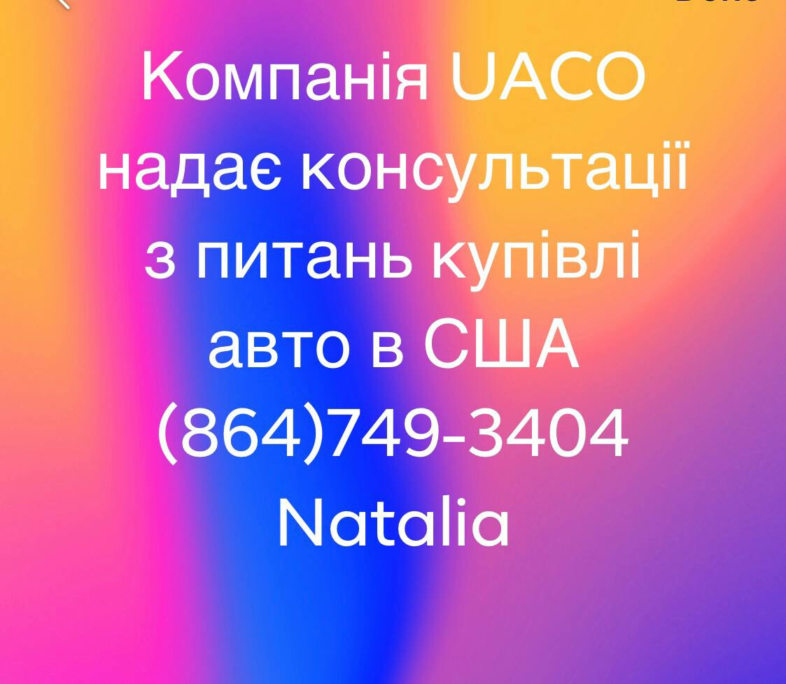 Компанія UACO надає консультації з питань купівлі авто в США (864) 749-344 Natalia