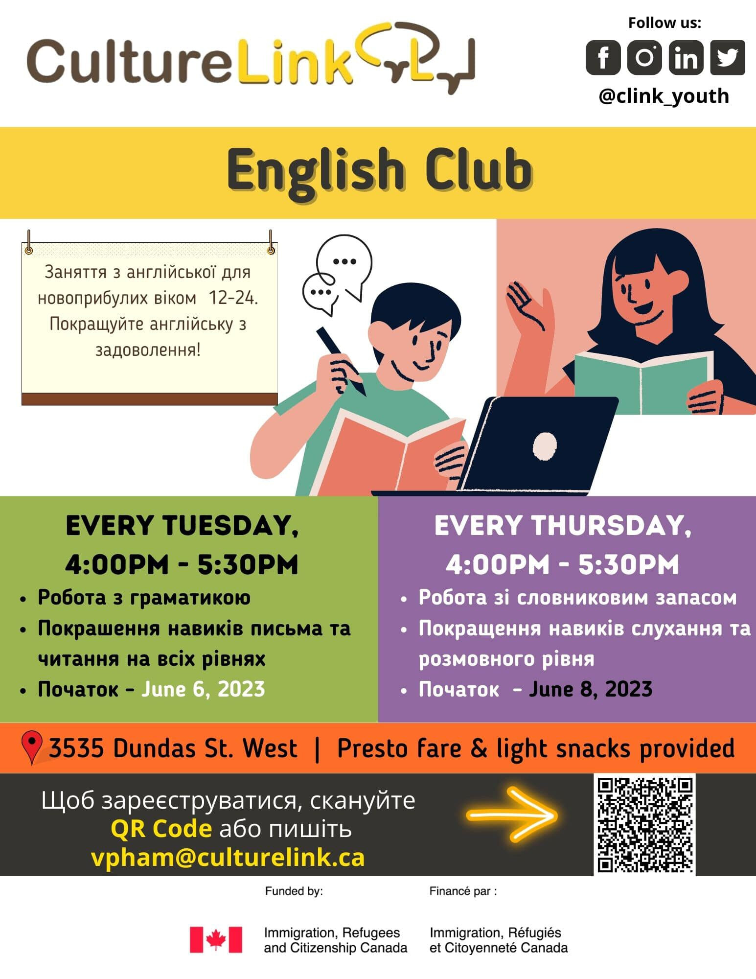 Організація CultureLink запрошує новоприбулих дітей та молодь віком від 12 до 24 років на безкоштовні заняття з англійської влітку.