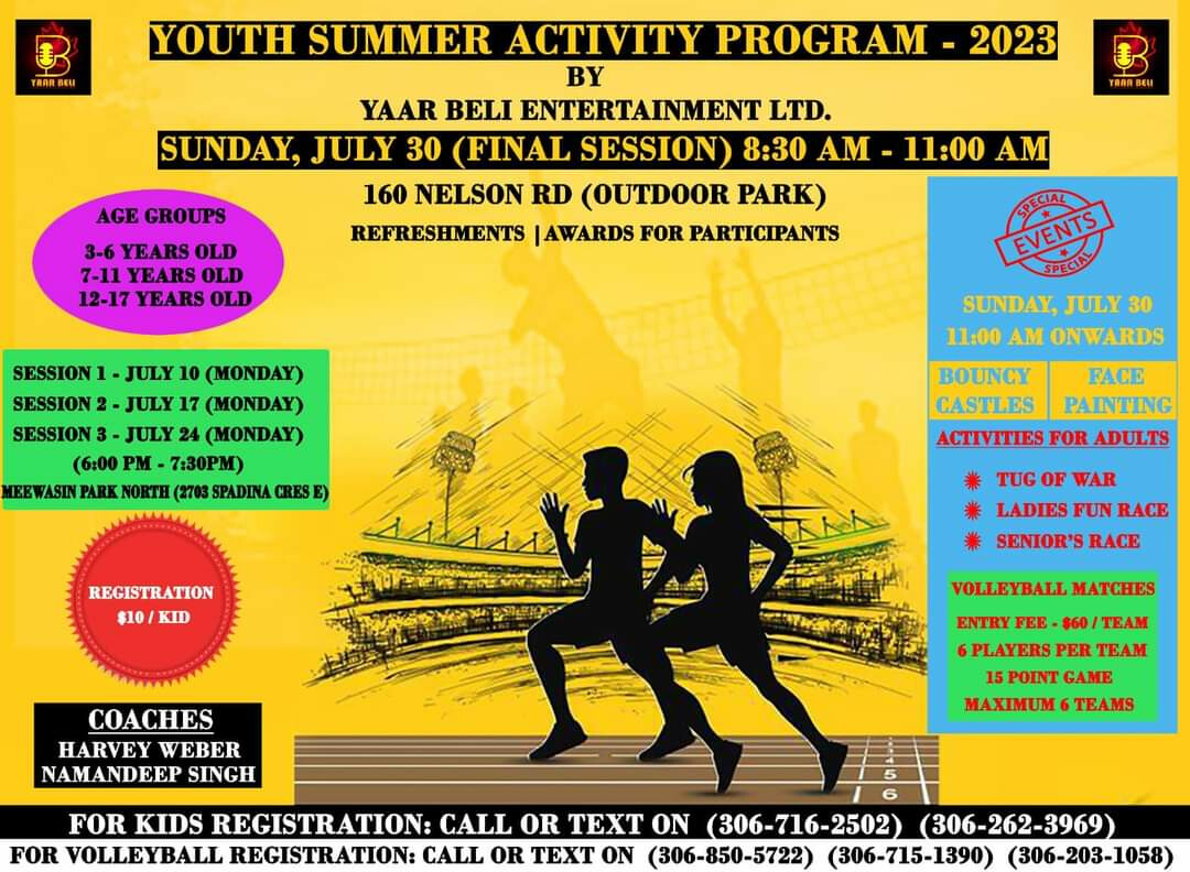 Для реєстрації дітей телефонуйте (306-716-2502) (306-262-3969). Для реєстрації на волейбол телефонуйте (306-850-5722) (306-715-1390) (306-203-1058) )