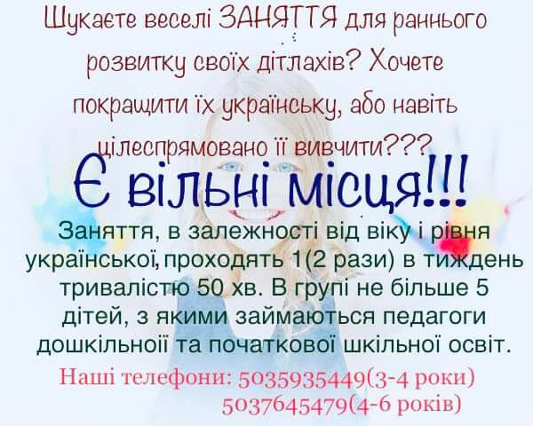 Шукаєте веселі заняття для раннього розвитку своїх дітлахів? Хочете покращити їх українську, або навіть цілеспрямовано її вивчити? Є вільні місця!