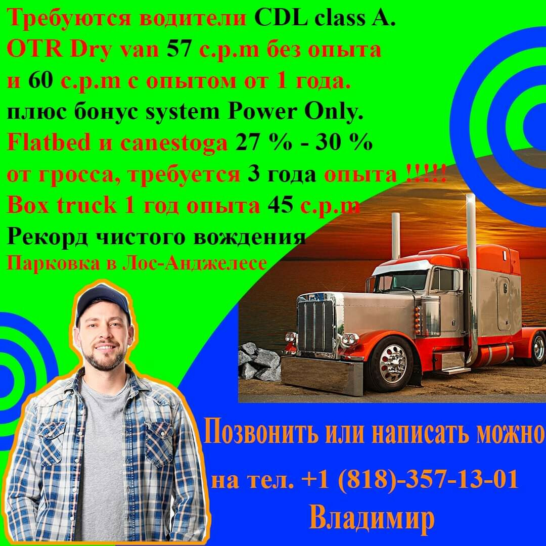 Потрібні водії CDL class A. З досвідом від 1 року. плюс бонус системи Power Only.