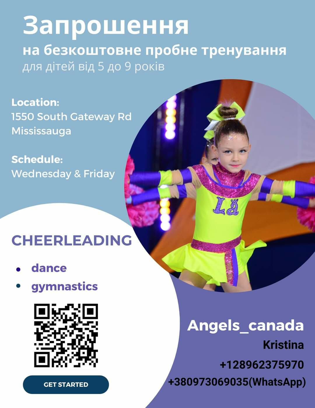 Запрошую на тренування з черлідингу, танців та гімнастики для діток віком від 5 до 9 рочків, перше пробне тренування безкоштовно.